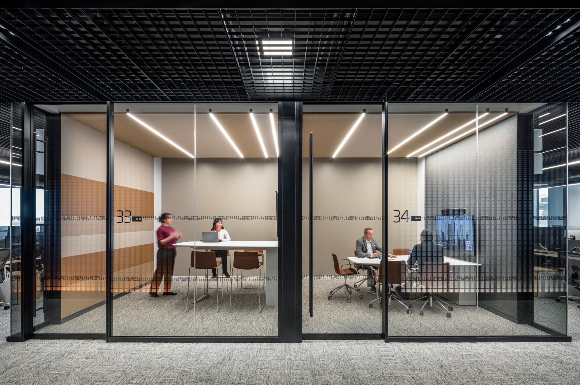 Maxxit’s integrated systems provide the architectural connective tissue for 400 Atlantic, unifying this modern workspace with a cohesive, wood-grained aesthetic.