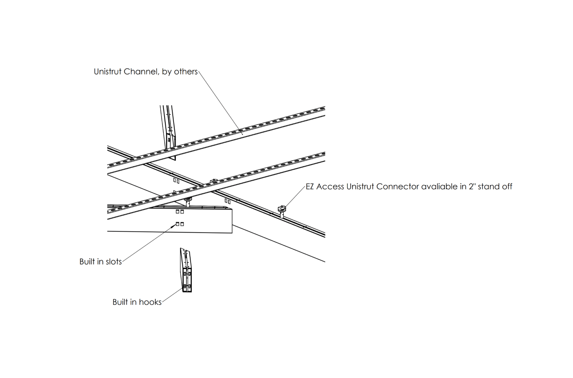 - Versatile attachment options for Unistrut,® 15/16” HD Grid and cable hung applications.