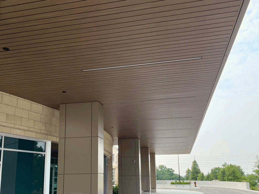 Fabricated Metal Plank SystemCreate a sleek linear aesthetic with this economical ceiling alternative. Good for interior or exterior applications.