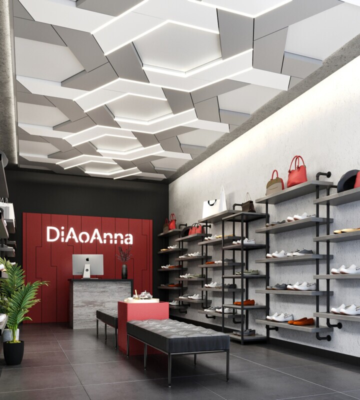 Geometric Ceiling PanelsDesign provides a bold departure from expected geometry, opening doors to innovative and dramatic effects. Interlocking seamlessly, each hexagon weaves into its neighboring shapes, crafting a unified and dynamic pattern that enriches the space with intricacy and texture.