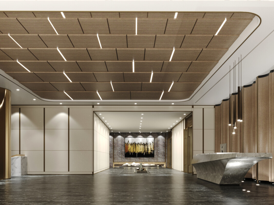 Geometric Ceiling PanelsDesign showcases ceiling panels arranged in a staggered or offset fashion, resulting in a visually dynamic and captivating effect. Perfect for adding a unique rhythm and style to any space while celebrating the intricacy of the in-between seams.