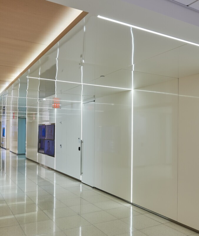 To meet the technical demands, we incorporated panel stiffeners to avoid oil caning in the large panels and did a custom color match to ensure the panels precisely matched the color and gloss finish of the walls.