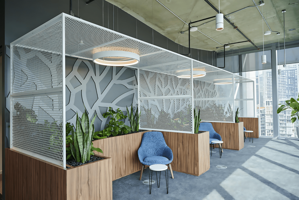 This workplace successfully combines functionality, aesthetics, and biophilic principles, supporting the client’s vision for an innovative and inclusive environment.
