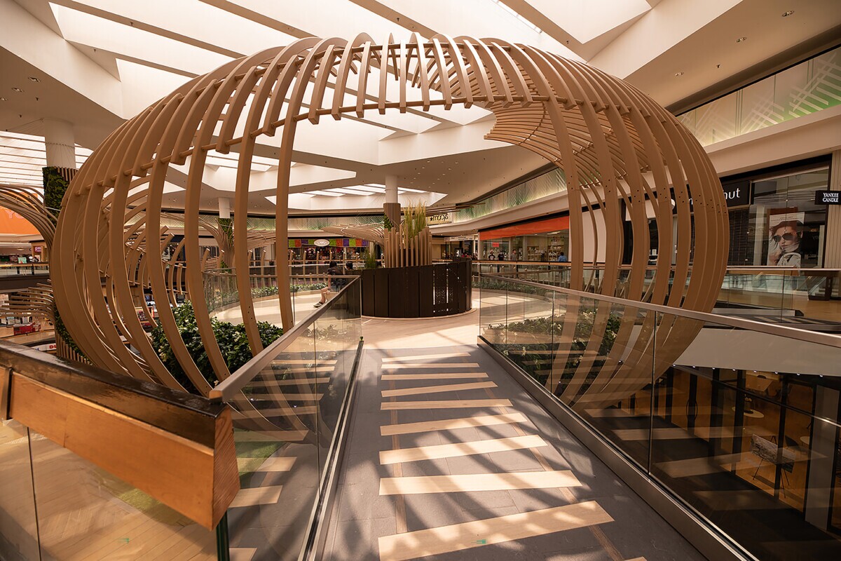 The Maxxit team worked closely with Centennial, Graycor and Stantec to bring their design to life. This high performing team transformed a complex design into a beautiful, durable and easy to install architectural showpiece. The space features a park like theme that is inviting to shoppers and is a gathering point for people in the neighboring communities.