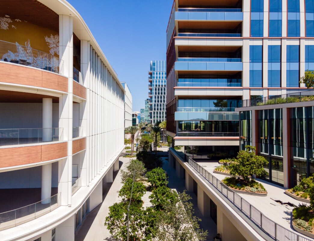 IQHQ Research and Development District (RaDD) is a transformative project spanning over eight acres of San Diego’s waterfront. Designed as a mixed-use life sciences campus, this cutting-edge development integrates laboratory, office, and retail spaces within five newly constructed buildings. Beyond its functional elements, the project enhances downtown San Diego with premier retail offerings, outdoor dining, open green space, public art, event venues, and seamless access to transit.