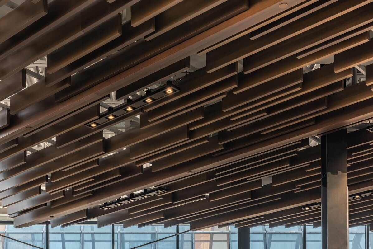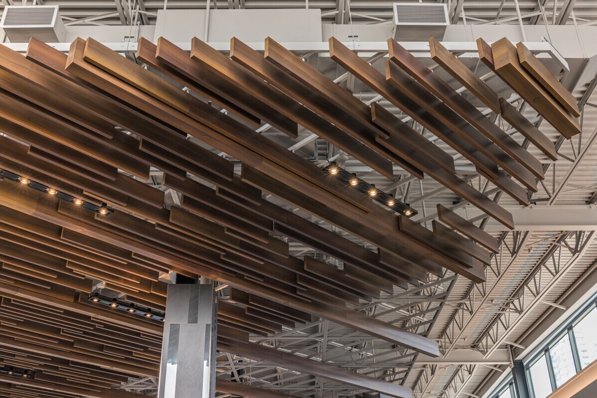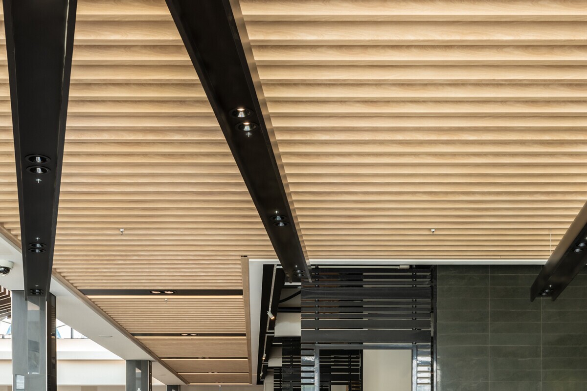 Lougheed Town Centre is located in Burnaby, BC, formerly known as Lougheed Mall. Maxxit collaborated with Benoy and IBI Group Vancouver to deliver practical solutions and a compelling design concept. Maxxit engineered and manufactured a primary upper ceiling to achieve the seismic rating required in that region. Also, providing baffles (2 sizes) creates a staggered effect to add a unique aspect.
