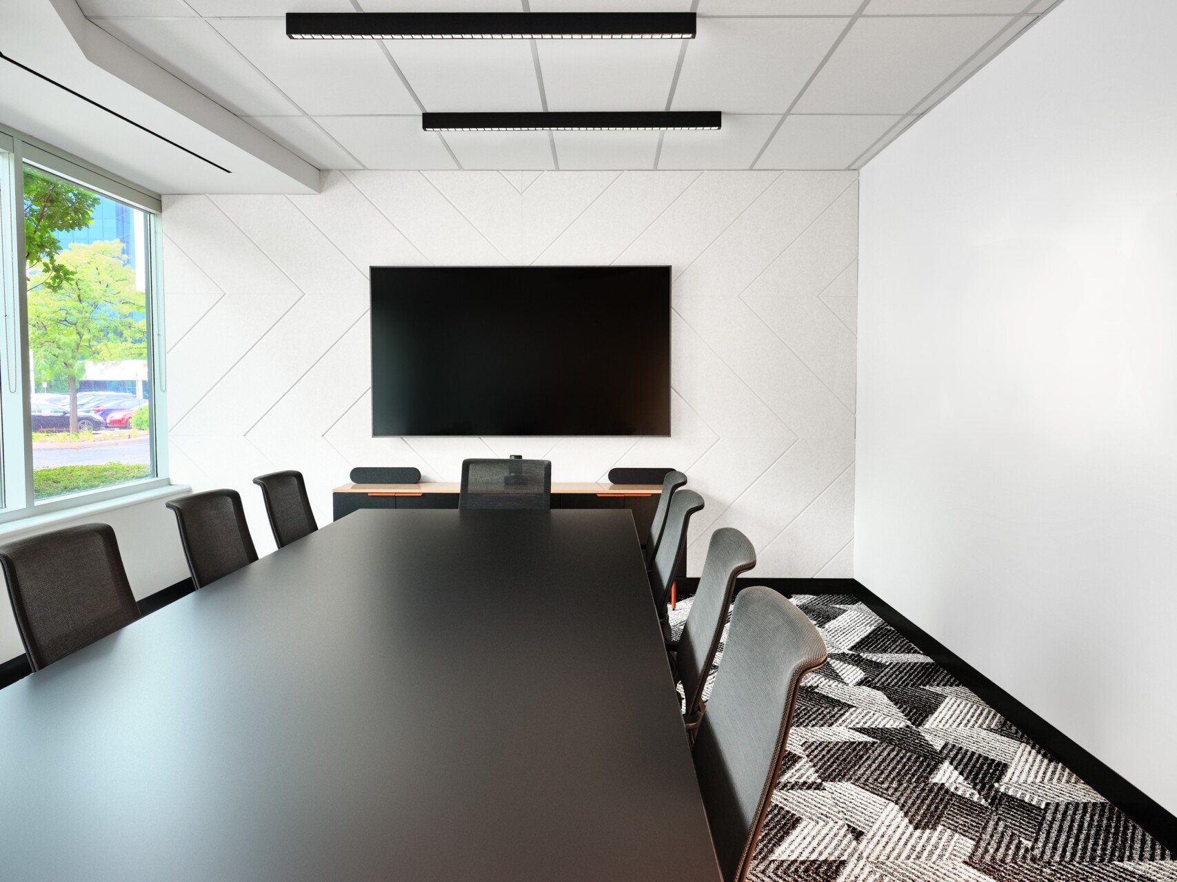 We created acoustic felt wall panels for the office space, boardroom, and café area. Crafted to enhance both aesthetics and occupant comfort, these felt panels are lightweight and durable, and offer exceptional sound reduction qualities. In a space where there are large windows and glass walls, the panels create another surface to absorb sound and can be seamlessly integrated into any environment. The PANEL:Form Quiet Wall Panels are surface mounted using a common construction adhesive, making installation fast and easy.