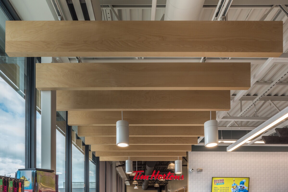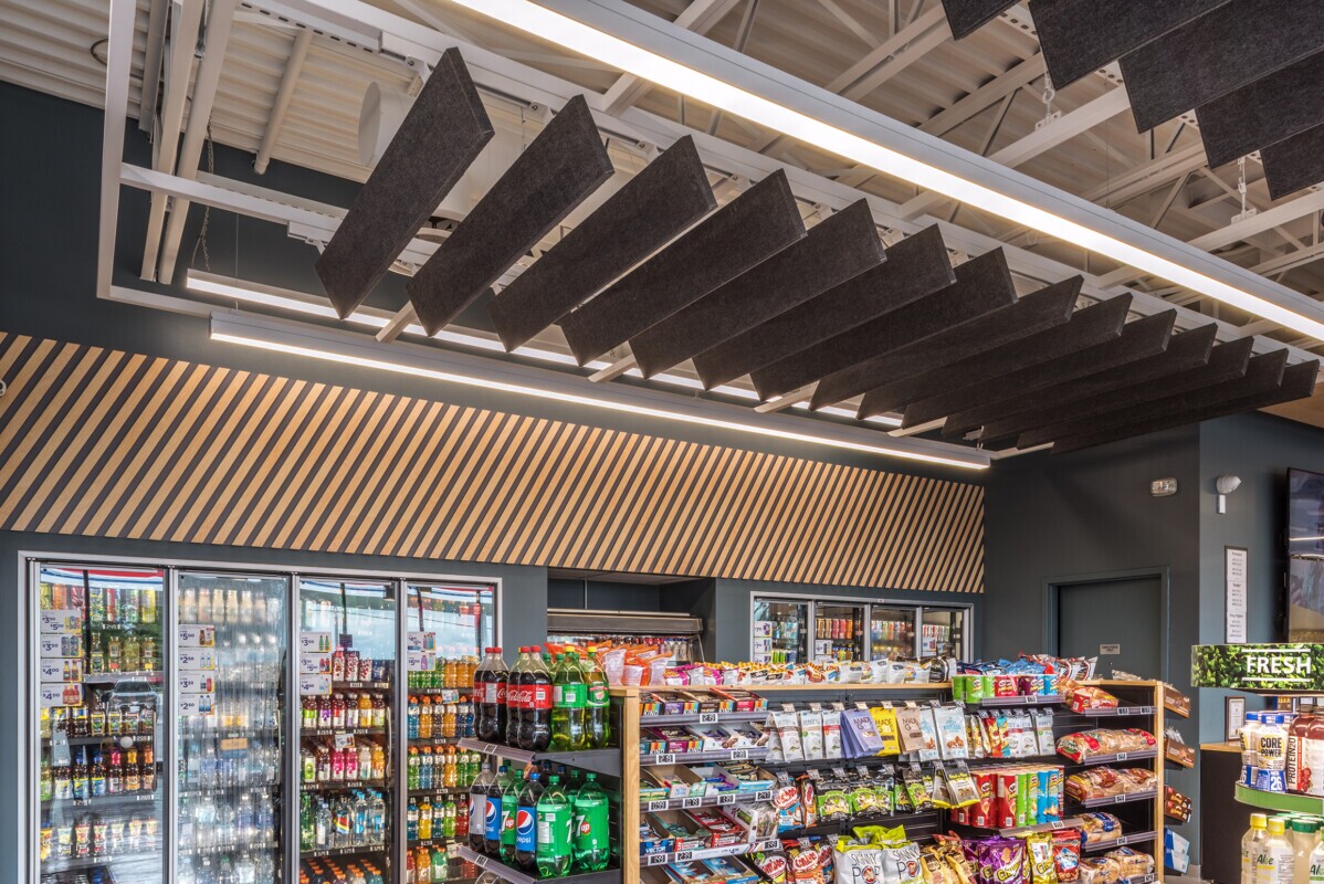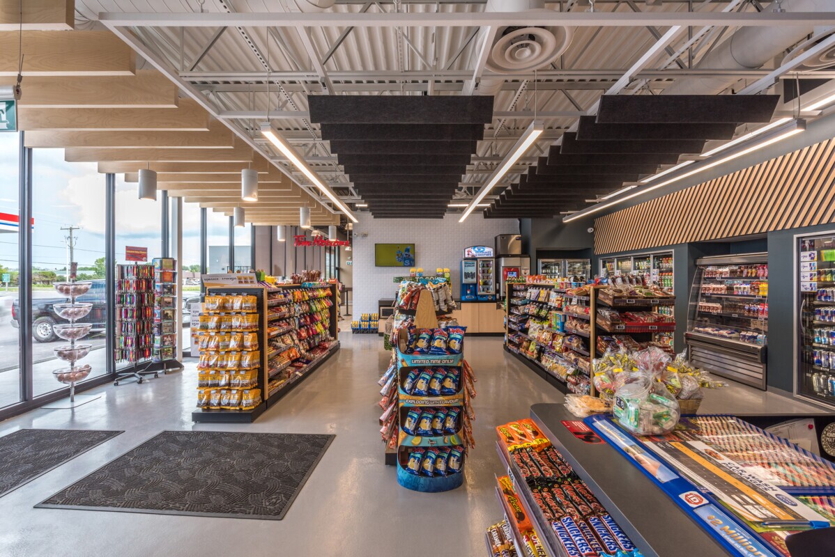 Maxxit works with Parkland with their ‘New To Industry sites and refreshes’. One of the many projects we have completed with Parkland was a Pioneer in Woodbridge, ON. Maxxit provided a complete outfit of the site, including: baffle ceiling, graphics, self-serve millwork, Brise Soleil and a cash desk. This station is impressive boasting a modern, clean and bright look.
