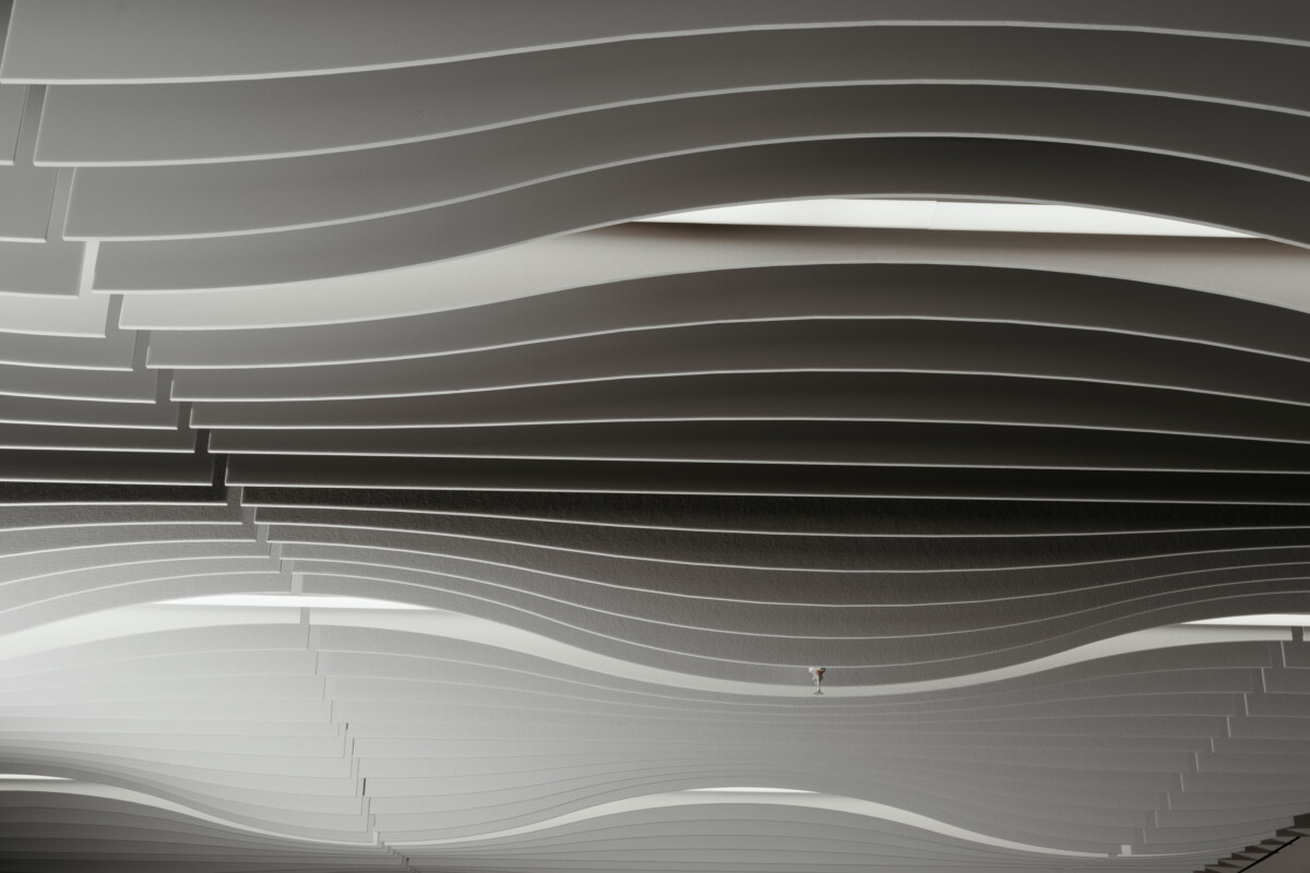 Previously, the space’s open layout presented acoustic challenges with high noise levels significantly impairing speech intelligibility. To address this concern, the LINE:Form Wave Baffles elevate acoustic quality while imparting a dynamic sense of movement, aligning seamlessly with the energetic vibe of the student community.