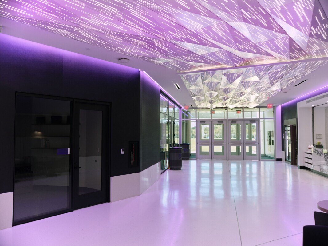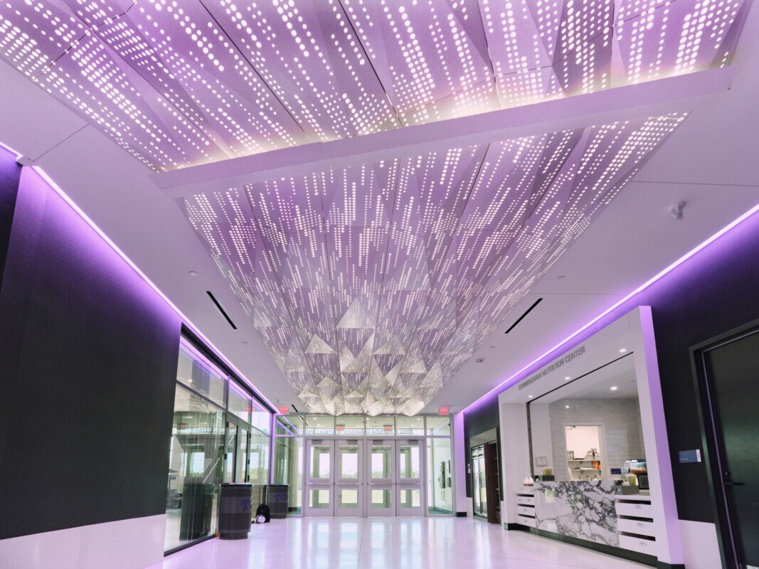 To reflect these ambitious goals, TCU sought a ceiling design that would not only complement the facility’s vision but also serve as an architectural focal point upon entry.